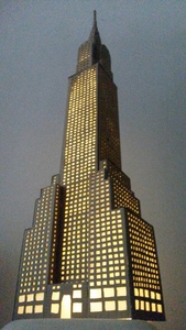2020Skyline lamp gemaakt van karton en plastic met ledlampen.