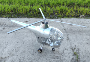 2021Retro helicopter met draaiende rotor en staartpropellor gemaakt van aluminium, gepopnageld.