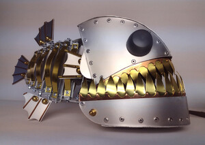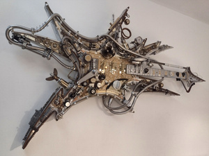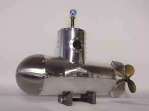 2016Levensgrote fantasie onderwaterscooter met een knipoog, gemaakt van hergebruikte materialen, met electromotor.